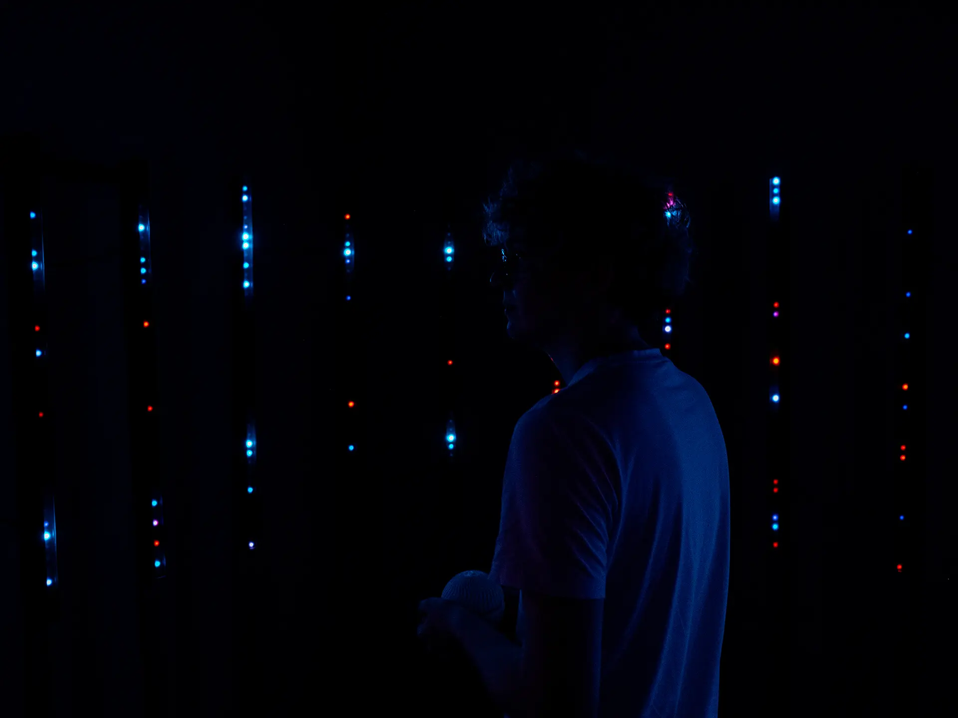 The Sphere is an immersive light and sound installation inside a large cylindrical structure. Visitors control the audiovisual environment through a custom-built spherical interface, triggering a three-part narrative experience. The project explores how physical interaction, sound, and light can merge into one cohesive and engaging media space.